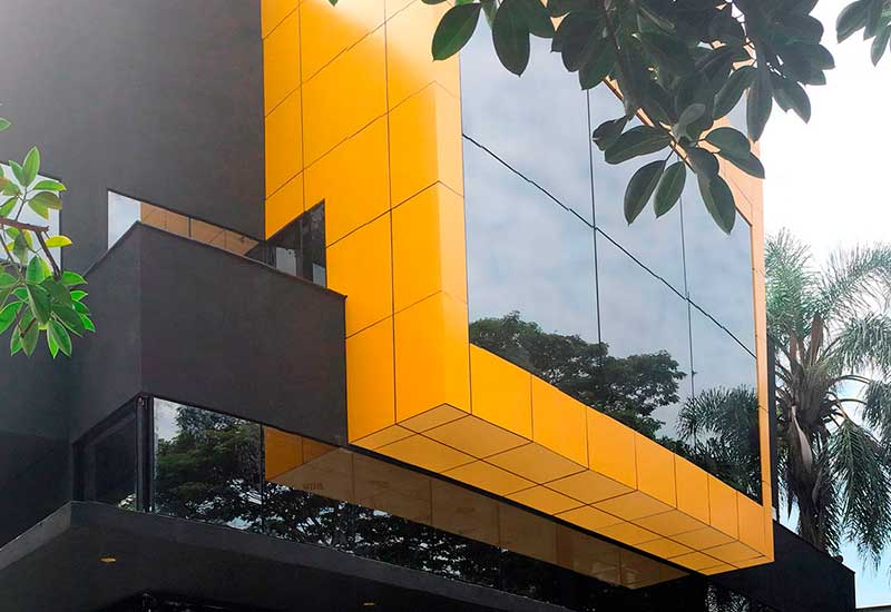 Composto por duas chapas lisas de alumínio, ligadas a um núcleo de polietileno, o ACM vez mais atual na arquitetura da cidade, e é bem utilizado como revestimento em fachadas comerciais, residenciais e em projetos de comunicação visual.